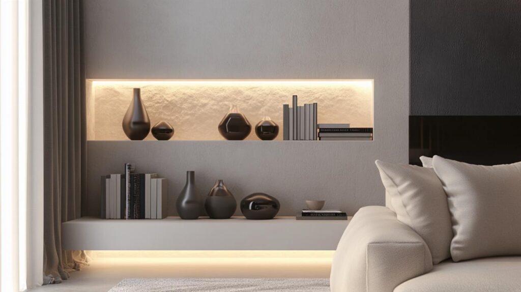 Le bois reste un choix privilégié pour ceux qui recherchent une ambiance chaleureuse et naturelle. Les tablettes en bois massif, notamment en chêne solide, apportent une touche rustique qui s'intègre parfaitement dans les intérieurs scandinaves ou traditionnels. Avec une profondeur de trente centimètres et une épaisseur de deux centimètres, ces tablettes offrent suffisamment de résistance pour supporter des objets décoratifs sans se déformer sous l'effet de la chaleur. Les essences de bois naturel présentent l'avantage d'être personnalisables selon les dimensions souhaitées et peuvent recevoir différentes finitions, du vernis brillant à la lasure mate. Les supports en acier brut accompagnent souvent ces tablettes en bois, créant un contraste intéressant entre la chaleur du matériau organique et la robustesse du métal. Le bois mélaminé constitue une alternative économique qui imite l'aspect du bois massif tout en offrant une meilleure résistance à l'humidité et aux variations de température.